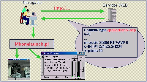 - Asociar el tipo mime "application/x-sdp" al script "mbonelaunch.pl". Por ejemplo para hacer esto en unix no sólo teneis que añadir al fichero ~/.mailcap una línea como esta: application/x-sdp;/usr/local/bin/mbonelaunch.pl %s